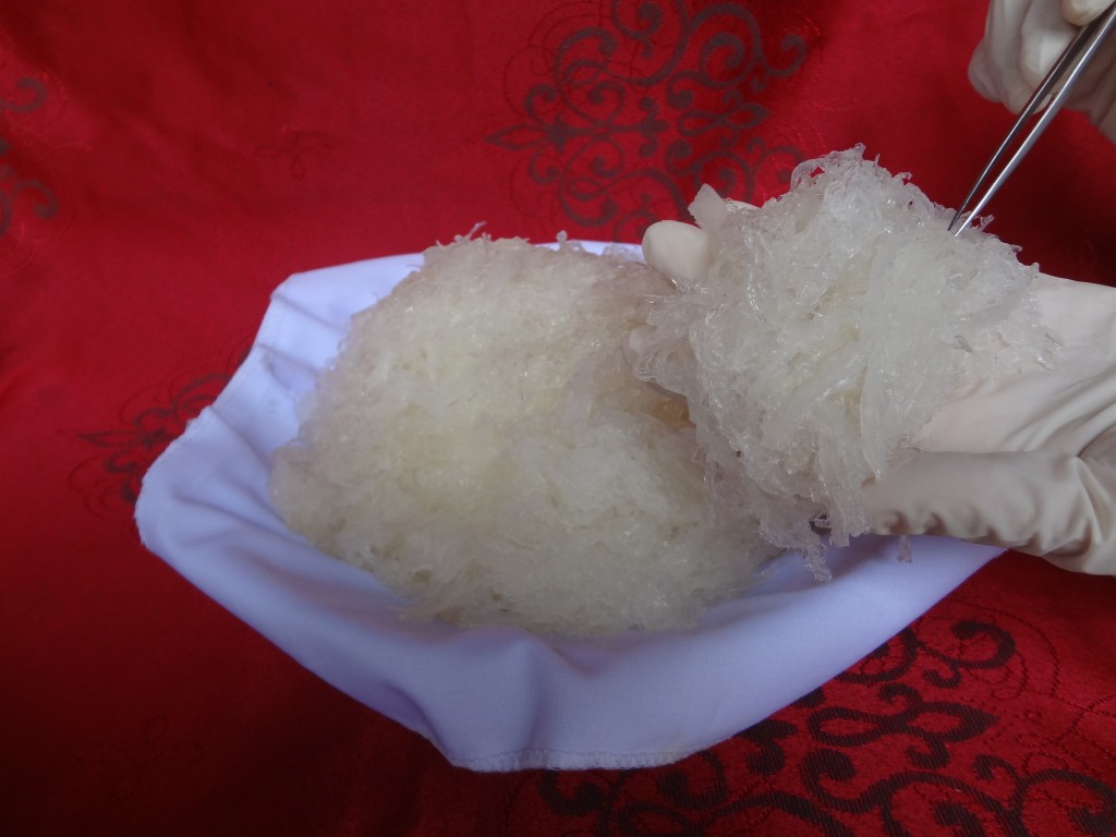 Sau khi tinh chế xong, yến ướt bỏ lại vô đúng hộp đó trả lại cho khách hàng.