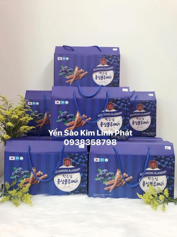 Hồng sâm và việt quất có chứa các dưỡng chất quý giá như saponin, flavonoid, anthocyanin, vitamin C, vitamin E, beta-carotene... giúp tăng cường sức khỏe, tăng cường miễn dịch, chống lão hóa và giảm viêm.